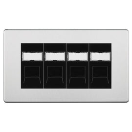 BG Screwless Brushed Steel 4 Gang RJ45 Cat6 Data Socket Outlet Black Inserts