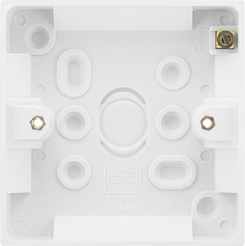 The BG Electrical Moulded 903 is a white single (1 gang) pattress box for switches measuring 19mm deep.