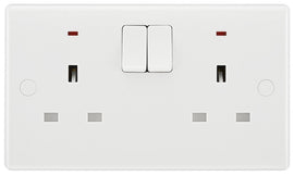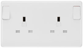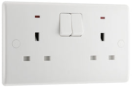 BG 826 Moulded Round Edge | White | 2 Gang 13A 1 Pole Neon Switched Socket