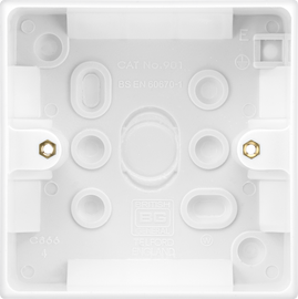 The BG Electrical Moulded 901 is a white single (1 gang) pattress box for socket outlets measuring 32mm deep.