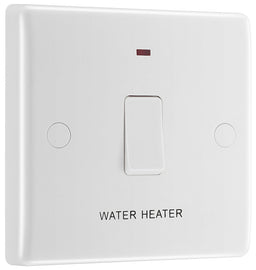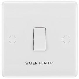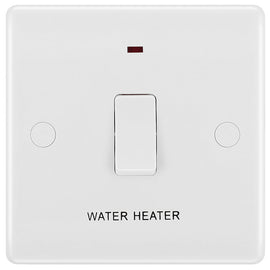BG 833WH White Round Edge 20A DP Switch marked Water Heater + Neon + Cable Outlet