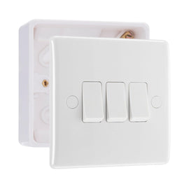 BG Nexus Triple Light Switch 3 Gang 10AX White & 32mm Pattress Back Box