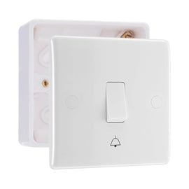 BG Nexus Single Bell Push Switch 1 Gang 10AX White & 32mm Pattress Back Box