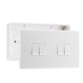 BG Nexus Quad Light Switch 4 Gang 10AX White & 32mm Pattress Back Box