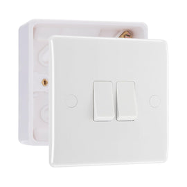 BG Nexus Double Light Switch 2 Gang 10AX White & 32mm Pattress Back Box