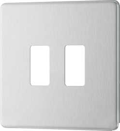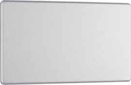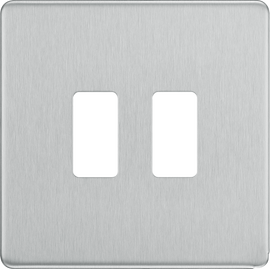 BG FBS98G Flatplate Screwless 16A, 2 Gang Unswitched Euro Socket, Brushed Steel