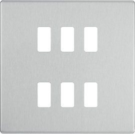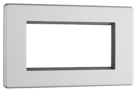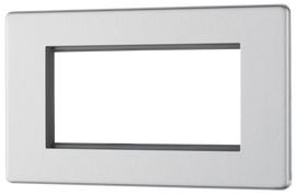 BG FBS69 Flatplate Screwless Quadplex TV/FM/Sat socket (x2) + Return & 1 gang Tel. - Screened Brushed Steel - Grey Insert
