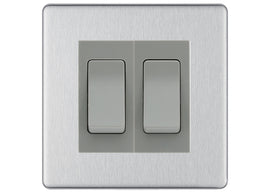 BG Screwless Brushed Steel 2-Gang Light Switch 1x 2-Way + 1x Intermediate – Grey Inserts