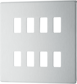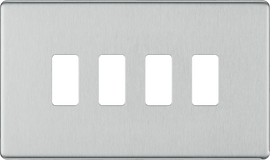 BG Brushed Steel Screwless 4 Gang Intermediate Light Switch Custom Grid - Grey Insert