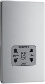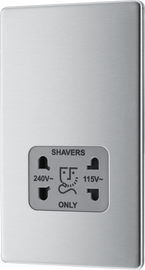 BG FBS20G Nexus Screwless Flat-Plate Shaver Socket Outlet Brushed Steel Grey Insert Dual Voltage 115V - 230V