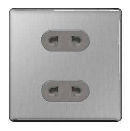 Brushed steel screwless double socket