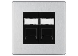 BG Screwless Brushed Steel 2 Gang RJ45 Data Socket FBSRJ452B Black Inserts