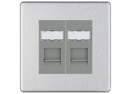 BG Screwless Brushed Steel 2 Gang RJ45 Data Socket FBSRJ452G Grey Inserts