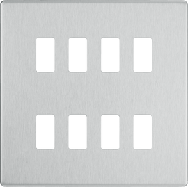 BG Brushed Steel Screwless 4 Gang Intermediate Light Switch Custom Grid - White Insert