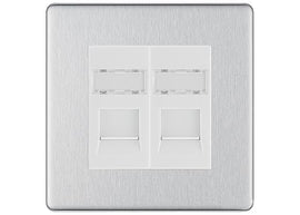 BG Screwless Brushed Steel 2 Gang RJ45 Data Socket FBSRJ452W White Inserts