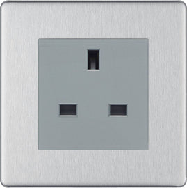 BG FBS99G Flatplate Screwless 15A, 1 Gang Switched Socket, Brushed Steel - Grey Insert