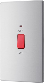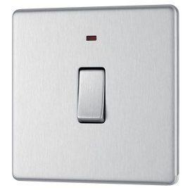 Double Pole Switch 20A - Brushed Steel with Neon Indicator