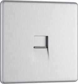 Flat-Plate Brushed Steel 1 Gang (1G) Slave Telephone Socket About Product: No visible plastic around switches Secure Screwless front Easy "clip on/off" plate Minimum back box depth: 35mm Sleek, flat profile Angled in-l...