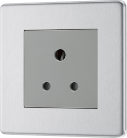 The FBS29MG is a 5A unswitched socket from the BG Nexus Screwless range, finished in brushed steel with grey inserts and built using the BG Euro Modular system. Wi...