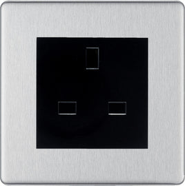The FBSUSSB is a 13A unswitched socket from the BG Nexus Screwless range, finished in brushed steel with black inserts and built using the BG Euro Modular system....