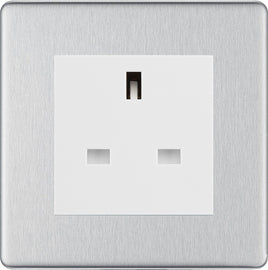 The FBSUSSW is a 13A unswitched socket from the BG Nexus Screwless range, finished in brushed steel with white inserts and built using the BG Euro Modular system....