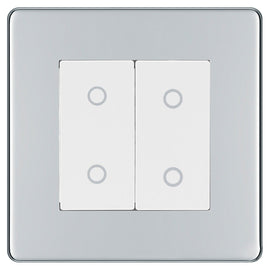 BG Nexus Screwless Polished Chrome Double Secondary Touch Dimmer Switch White Inserts FPCTDS2W Touch Dimmer Switch – Intelligent Trailing Edge Intelligent trailing edge dimmers have a lower minimum load than leading edge di...