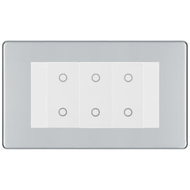 BG FPC83P Nexus Screwless Flat-Plate 3 Gang, 2 Way, 400W Polished Chrome Minimum mounting box depth 25mm Suitable for compact fluorescent lamps (CFL) and LED Dimming There can be issues with dimming CFL and LED lamps at a lo...