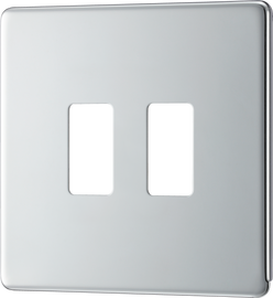 Nexus Screwless Grid Polished Chrome 2 Module Front Plate About Product: 2 Gang front plate Polished Chrome finish Designed to match the Nexus Polished Chrome Screwless Flate Plate range No visible plastic around rockers...