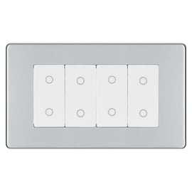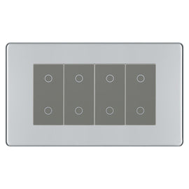 BG Nexus Screwless Polished Chrome Quad Master Touch Dimmer Switch Grey Inserts FPCTDM4G