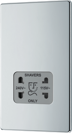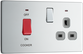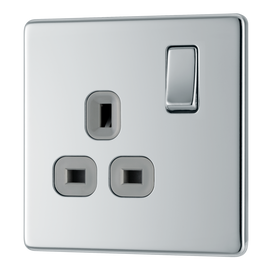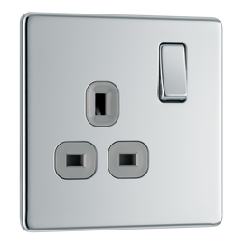 BG Screwless Polished Chrome 13A Double Pole Key Controlled Socket – Grey Inserts