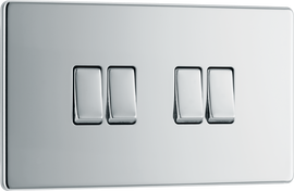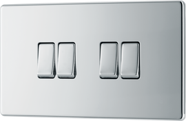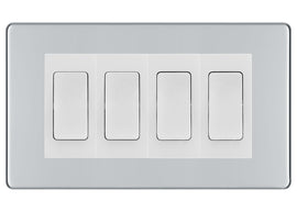 BG Polished Chrome Screwless 4 Gang Intermediate Light Switch Custom Grid - White Insert