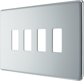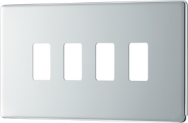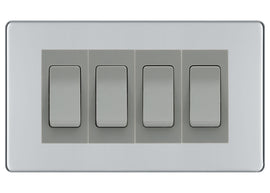 BG Polished Chrome Screwless 4 Gang Intermediate Light Switch Custom Grid - Grey Insert