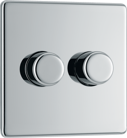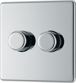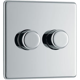 Nexus Flatplate Screwless Polished Chrome 2 Gang 200W 2 Way Trailing-Edge Push Dimmer Switch