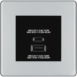 BG Polished Chrome 45W USB Wall Socket Euro Module USB-A & C - Black Insert