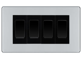 BG Polished Chrome Screwless 4 Gang Intermediate Light Switch Custom Grid - Black Insert