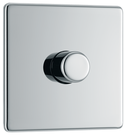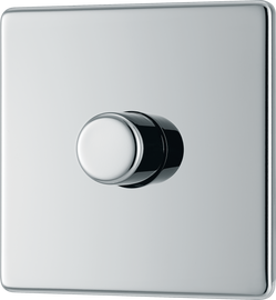 Nexus Flatplate Screwless Polished Chrome 1 Gang 200W 2 Way Trailing-Edge Push Dimmer Switch