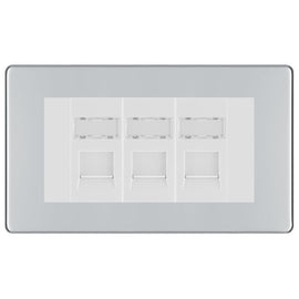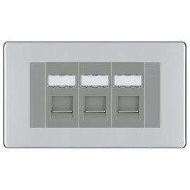 BG Screwless Polished Chrome 3 Gang RJ45 CAT6 Data Socket Grey Inserts