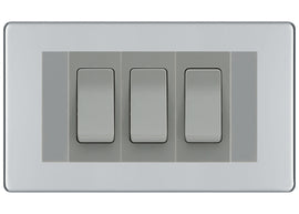 BG Polished Chrome Screwless 3 Gang 20AX 2-Way Switch Custom Grid - Grey Insert