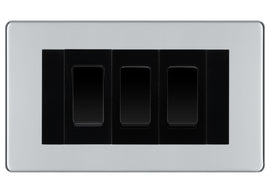 BG Polished Chrome Screwless 3G Switch 1x Intermediate 2x 2 Way Switch - Black Insert
