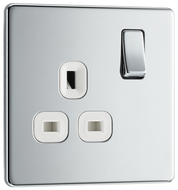 The FPCRJ453W is a RJ45 Cat6A data outlet from the Flatplate Screwless range from BG Electrical, finished in Polished Chrome with white inserts and...