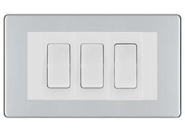 BG Polished Chrome Screwless 3 Gang Intermediate Light Switch Custom Grid - White Insert