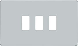 BG Polished Chrome Screwless 3 Gang Intermediate Light Switch Custom Grid - Grey Insert