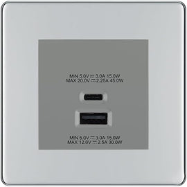 BG Polished Chrome 45W USB Wall Socket Euro Module USB-A & C - Grey Insert