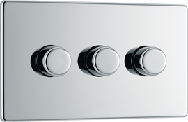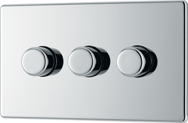 Nexus Flatplate Screwless Polished Chrome 3 Gang 200W 2 Way Trailing-Edge Push Dimmer Switch