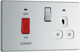 BG Screwless Polished Chrome 13A Double Pole Key Controlled Socket – White Inserts