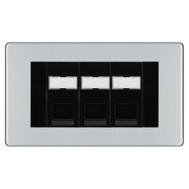 BG Screwless Polished Chrome 3 Gang RJ45 Cat5e Data Socket Black Inserts