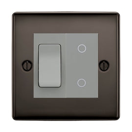BG Black Nickel 2 Gang Custom Switch 1x 2 Way Switch 1x Secondary Touch Dimmer White Inserts