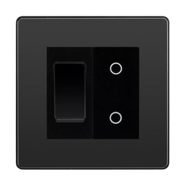 BG Matt Black Screwless 2 Gang Custom Switch 1x 2 Way Switch 1x Secondary Touch Dimmer Black Inserts