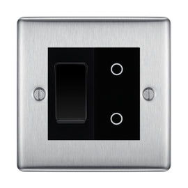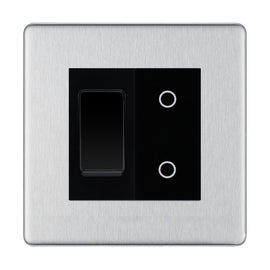 BG Brushed Steel 2 Gang Custom Switch 1x 2 Way Switch 1x Secondary Touch Dimmer Black Inserts