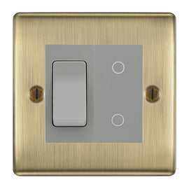 BG Antique Brass 2 Gang Custom Switch 1x 2 Way Switch 1x Secondary Touch Dimmer Grey Inserts